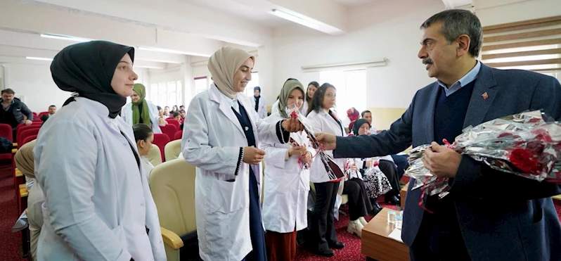 Erzurum'da okul ziyaretlerinde bulunan Millî Eğitim Bakanı Yusuf Tekin, 8 Mart Dünya Kadınlar Günü dolayısıyla kadın öğretmenlere çiçek verdi.