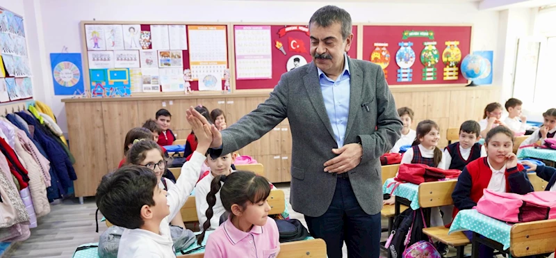 Öğretmen ve öğrenciler tarafından çiçeklerle karşılanan Bakan Tekin, sınıfları gezerek öğrencilerle görüştü.