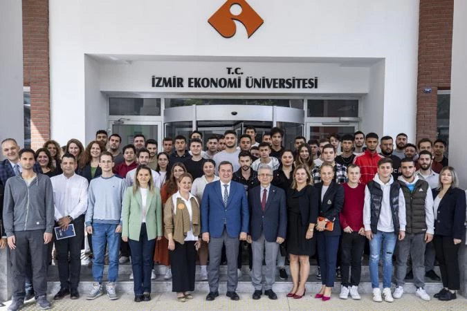 Konak Belediye Başkanı Abdül Batur, iş garantisi ve uluslararası sertifika imkanıyla başlattığı AB hibe destekli Konak İş Eğitim Merkezi projesi kapsamında eğitim alan gençleri ziyaret etti. Başkan Batur, 18-29 yaş aralığındaki Konaklı 60 gencin İzmir Ekonomi Üniversitesi’nde gerçekleştirilen derse İzmir Ekonomi Üniversitesi Rektörü Prof. Dr. Yusuf Hakan Abacıoğlu, rektör yardımcıları ve üniversite hocaları ile birlikte katıldı. Derse katılmadan önce Rektör Abacıoğlu’nu makamında ziyaret eden Başkan Batur, Konak Belediyesi’yle birlikte proje ortağı olarak Konak İş Eğitim Merkezi projesine verdikleri katkı için Abacıoğlu’na plaket takdim etti.