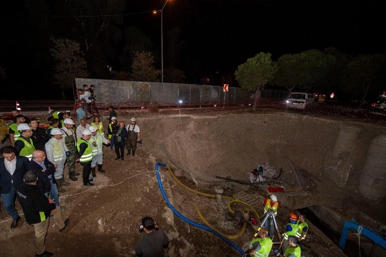 İzmir Büyükşehir Belediye Başkanı Tunç Soyer, Büyük Kanal hattında tıkanmaları önlemek ve kentin atık sularının İzmir Körfezi'ne ulaşmasını engellemek için çalışan İZSU Genel Müdürlüğü işçilerini ziyaret etti. Gecenin ilerleyen saatlerinde alana gelerek yerin yaklaşık 8 metre altında devam eden çalışmaları inceleyen Başkan Soyer, “İzmirliler rahat uyusun. Onlar için olağanüstü titizlik ve özveri ile çalışan büyük bir ekip var” dedi. Soyer, işçilere tatlı da ikram etti.