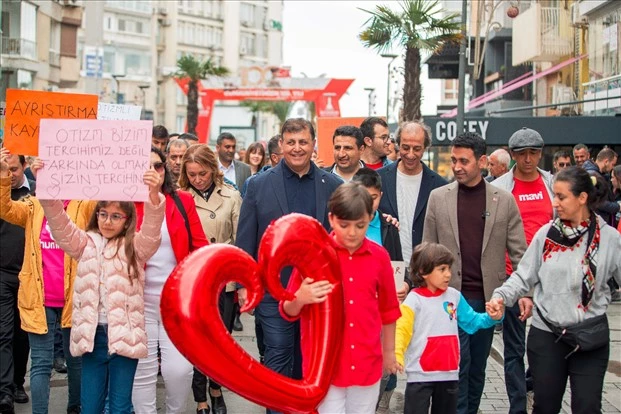Otizmli bireylerin sorunlarına dikkat çekmek için KEDİ Otizm Derneği tarafından düzenlenen 2. İzmir Otizm Yürüyüşü'ne katılan İzmir Büyükşehir Belediye Başkanı Dr. Cemil Tugay, ilçe belediyeleri ile otizm konusunda farkındalık yaratmak için çalışacaklarını, sorunlara çözüm üreteceklerini belirtti.