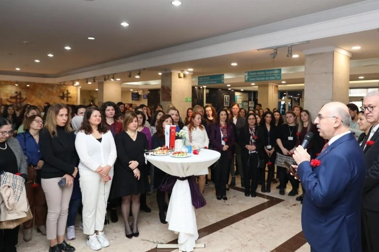 Programda DEÜ’nün kadın mensupları adına konuşan Dokuz Eylül Üniversitesi Onkoloji Enstitüsü Müdürü Prof. Dr. Hatice Nur Olgun, kadınların hayatın her alanında aktif bir biçimde yer aldığını ve yüklendiği sorumluluklarla topluma yön vermeyi sürdürdüğünü vurguladı. Türkiye’nin bugünlere gelmesinde ve önemli kazanımlar elde etmesinde kadınların payının büyük olduğunu belirten Prof. Dr. Olgun, “Kadınlar Gününü sadece bir cinsiyetin yüceltildiği an olarak değil, toplum hayatının geldiği noktanın değerlendirildiği bir gün olarak değerlendirmek gerekir. Öte yandan yılın tek bir günü değil, her günü kadınlarındır. Bu bilinç ile el ele olmaya devam edecek, kurumumuzu ve ülkemizi bilimde, sağlıkta, sanatta, sporda ve kültürel yaşamda daima ileriye ve üst seviyelere taşımak için elimizden geleni yapacağız” dedi.