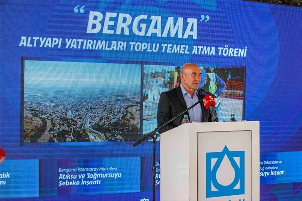 İzmir Büyükşehir Belediyesi İZSU Genel Müdürlüğü’nün "Cumhuriyetin 100. Yılında 100 Proje" başlıklı yatırım programı kapsamında Bergama’da üç önemli yatırımın temeli atıldı. 103 milyon liraya mal olacak 21 kilometrelik atık su ve yağmursuyu hattı ile 28 kilometrelik içme suyu hattının İslamsaray Mahallesi'nde yapılan temel atma törenine İzmir Büyükşehir Belediye Başkanı Tunç Soyer, İzmir Büyükşehir Belediyesi Başkan Vekili Mustafa Özuslu, Bergama Belediye Başkanı Hakan Koştu, Dikili Belediye Başkanı Adil Kırgöz, Foça Belediye Başkanı Fatih Gürbüz, İZSU Genel Müdürü Ali Hıdır Köseoğlu, siyasi partilerin temsilcileri, muhtarlar ve yurttaşlar katıldı.