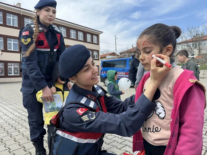 Yozgat'ta Jandarma ekipleri, Ramazan Bayramı öncesi Divanlı Mahallesi Refika-Mustafa Kıymazaslan Ortaokulu bahçesinde çocuklarla bir araya geldi.