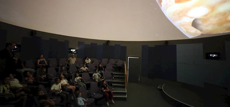 Uzmanlardan uzay hakkında bilgi alan çocuklar, daha sonra planetaryumda uzay deneyimini yaşadı.