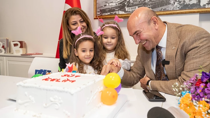Başkan Soyer, toplantı salonunu Türk bayrakları ve balonlarla dolduran miniklerle sütün ve süt içmenin önemi hakkında sohbet etti. Anaokulu Müdürü Hülya Altun ise Başkan Soyer’e Süt Kuzusu projesiyle çocukların gelişimine katkı sağladığı için okul ve veliler adına teşekkür etti. Sohbetin ardından Başkan Soyer öğrencilerle üstünde “Süt İçelim” yazan pasta kesti.