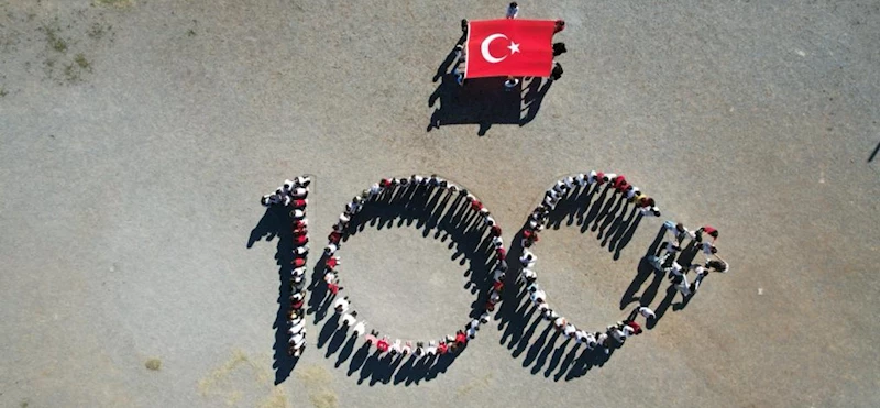 Etkinlikte dev Türk Bayrağı açan öğrenciler "100. Yıl" ve "Ay Yıldız" koreografisi eşliğinde 100. Yıl coşkusu yaşadı.