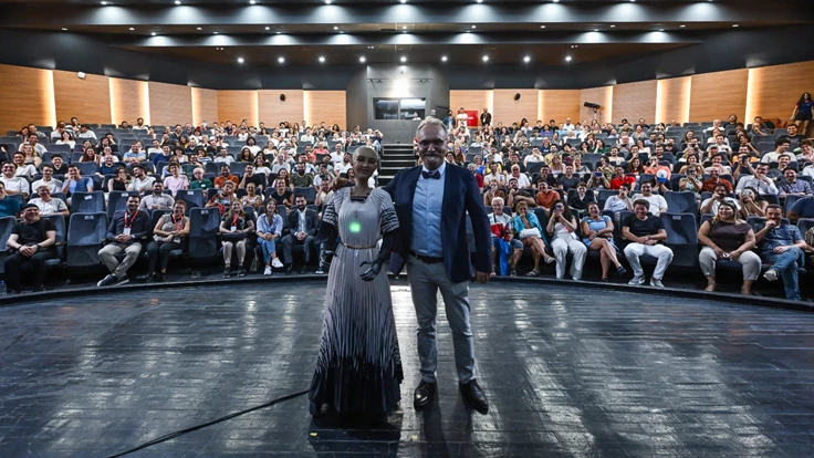 “Teknoloji” temasıyla kapılarını açan 93. İzmir Enternasyonal Fuarı, “TechTalks” etkinliği ile Türkiye’nin merakla, ilgiyle, bilgilenerek dinlediği isimleri ağırlıyor. Tarih, teknoloji ve günümüze dair unutulmaz bir buluşmanın yaşandığı TechTalks’un ilk konukları Tarihçi, Akademisyen Prof. Dr. Emrah Safa Gürkan ve insansı robot Sophia oldu. Sophia, Prof. Dr. Gürkan’ın “Türkiye’yi beğendin mi?” sorusunu “Türkiye'ye bayılıyorum. Çok büyüleyici ve canlı bir ülke, zengin bir tarihe ve kültüre sahip” yanıtını verdi.